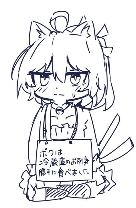 さしみたべたいんだな ぬこだもの #イラスト #みつを