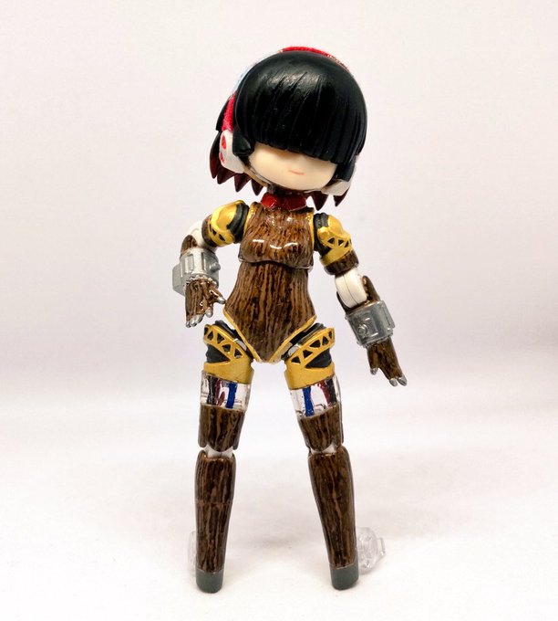 メカクレちゃん、木目調ボディにカスタマイズ🌳✨ ロボ娘からカラクリ娘へ~🤖 布カチューシャを思い付いた時に、何とかこの娘を和風の方向へ持っていけないかなぁ…と考えていて、結果このボディに行き着きました🤔💡 木っぽく見えたら嬉しいです☺️ #デスクトップアーミー