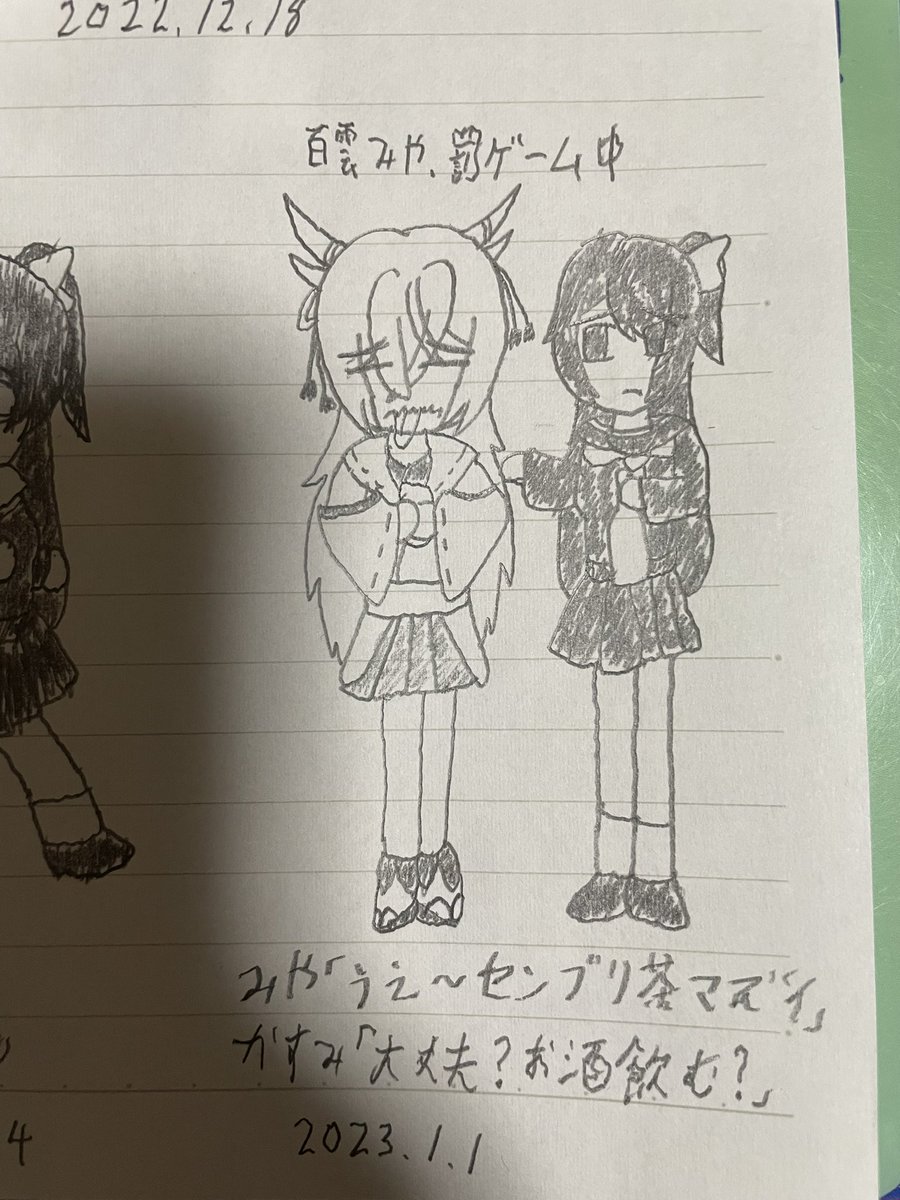 3 12 百雲みやさん耐久配信中に思いついたシチュマンガ、完成しました❗️ 司令官の中でみやさんといえば組ませたいのは嫁殿の胡蝶かすみさんなんですよ〜 今回のお題は、罰ゲーム‼️ 神様はいつも身体張ってます😱 #百雲みや #胡蝶かすみ #もぐリ絵 #かすみんイラスト 23/01/01 22:13