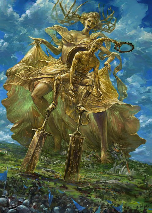 177 1061 #今までで作画カロリーMAXの作品上げようぜ の中の1枚(2011年制作) "LORD of VERMIRION Re:2 画集「金」" 見開きpage用に描き起こし。 23/03/07 14:07