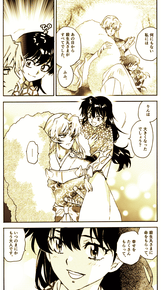 最新第四巻、私の一番のお気に入りシーンはここですかね。この「ぴょこっ」っていう芝居で、『犬夜叉』のりんちゃんと『夜叉姫』のりん様をつなげた気が。買ってね! shogakukan-comic.jp/book?isbn=9784…
