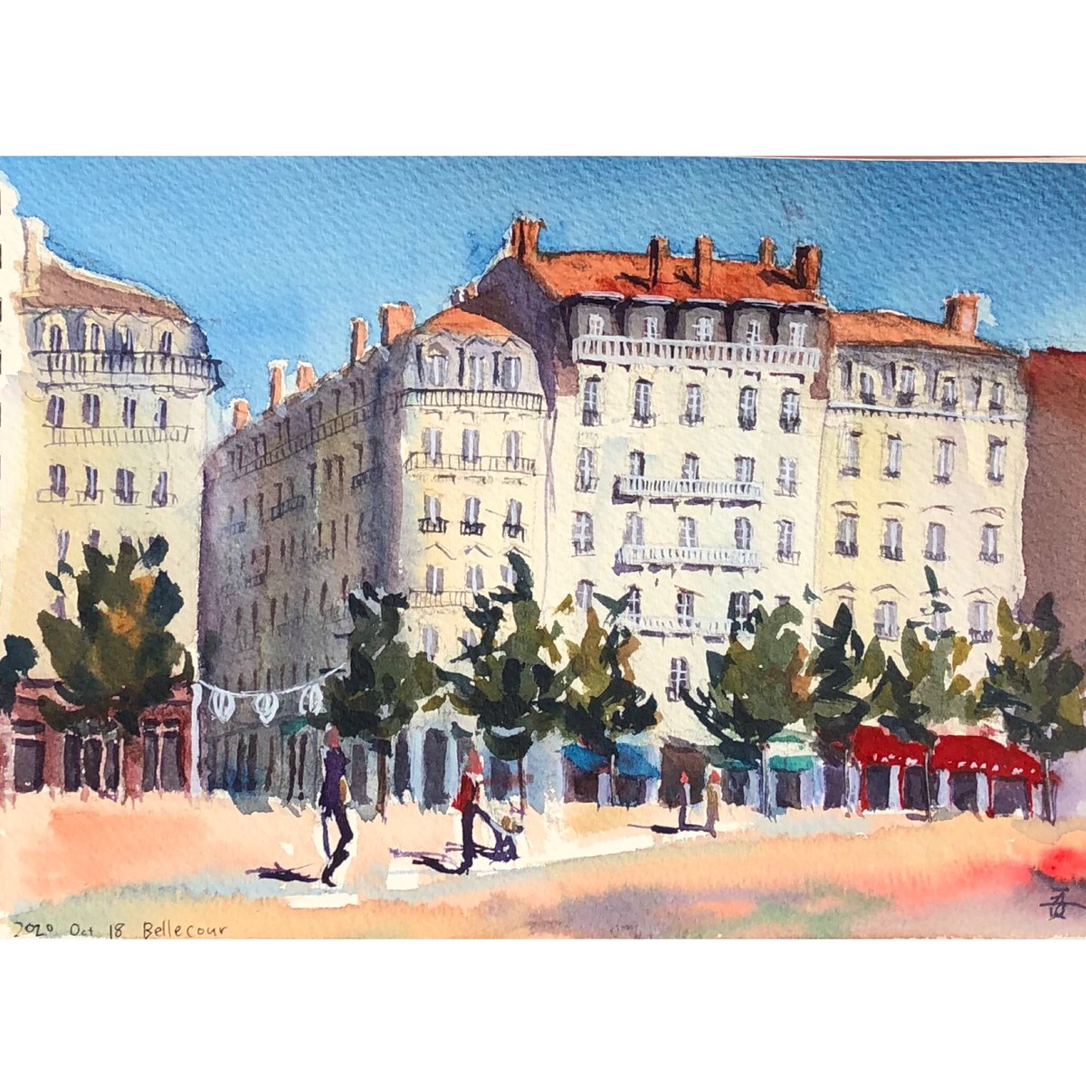 0 14 Bellecour広場のアパルトマン #aquarelle #水彩画 #リヨン 20/10/19 05:38