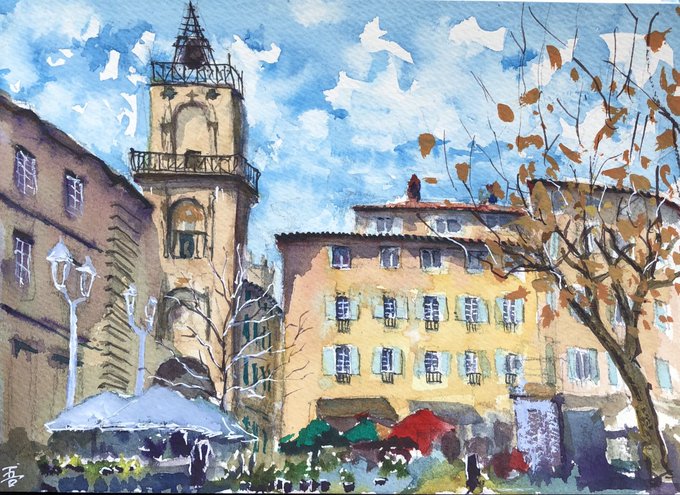 Place Richelme #AixEnProvence #aquarelle #Watercolour #水彩画