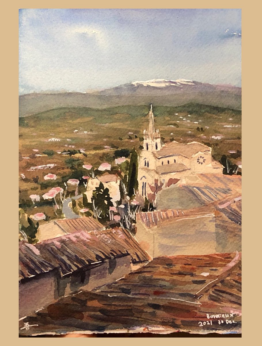 0 10 Mont Ventoux🗻 from the village in Luberon #watercolor #水彩画 #aquarelle 22/01/02 01:22