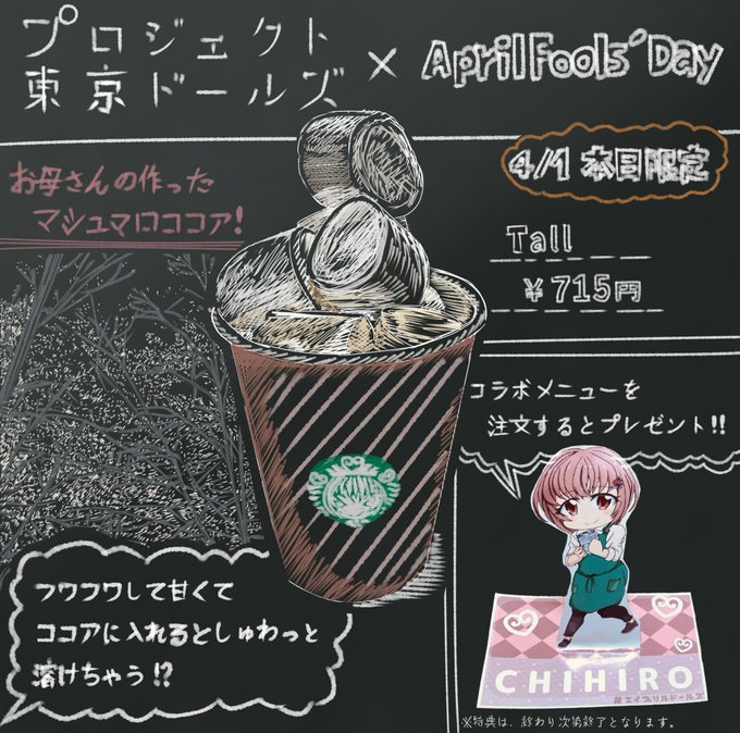コラボメニュー 帰ってきた、 お母さんが使ったマシュマロココア! 【エイプリルフール】 #エイプリルドールズ #東京ドールズファンアート