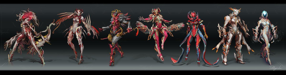 Here's our 'Shirogane' Warframes roster so far❤️ Creating order : Newest (left) <<< First (right) Ivara, Garuda, Saryn, Protea, Wisp, Mesa, Mag 🥂Now we got 7 from 48 nonprime-frame(correct me if I'm wrong)☺️ @PlayWarframe #Warframe #warframefanart