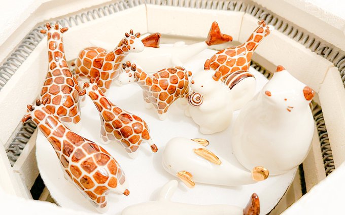 釉薬はコンプレッサーでかけるよ🐥 よしよしして定着させてまたかけるのを繰り返すよ🐣