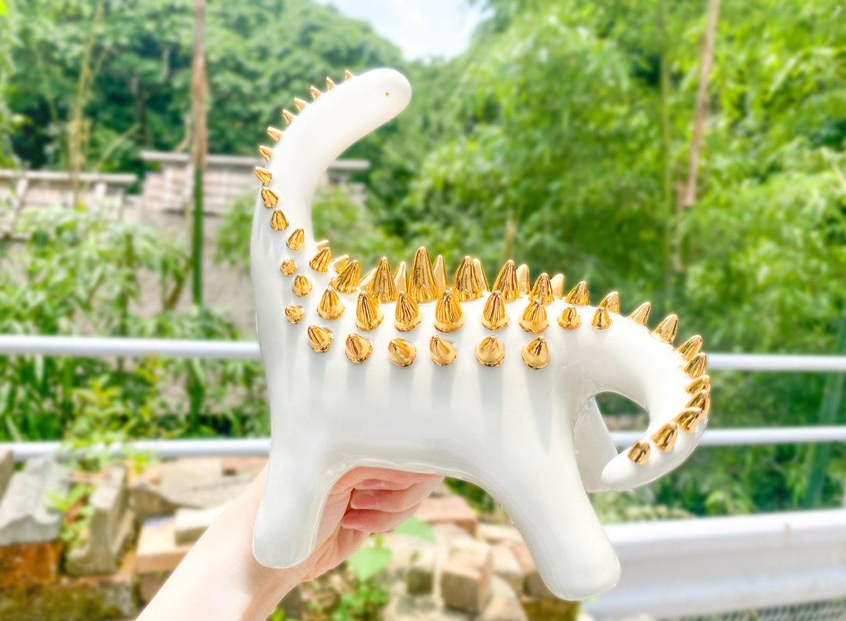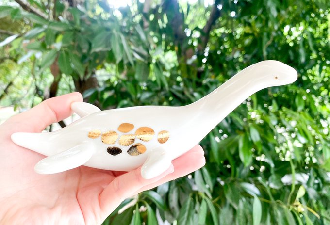 陶器のきらきらアンペロサウルスくんです!!✨🌿 きらきらに焼けたよ❤️🔥