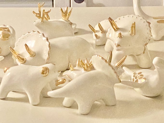 「family」 横30cmほどの作品です☁🕊💫 #トリケラトプス #陶芸