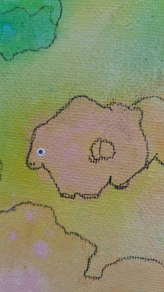 3 3 awainote @awainote1027 の絵🎨 途中経過。。。 色面を見て浮かび上がってきた線から風景やいきものが現れました✏️ この絵の僕のターンは終了です。 絵の全体はまた後日。 完成次第、ショップに追加予定です👇️ minne.com/@awainote0206 #awainote #絵 #イラスト #抽象画 #アート 22/08/28 16:44