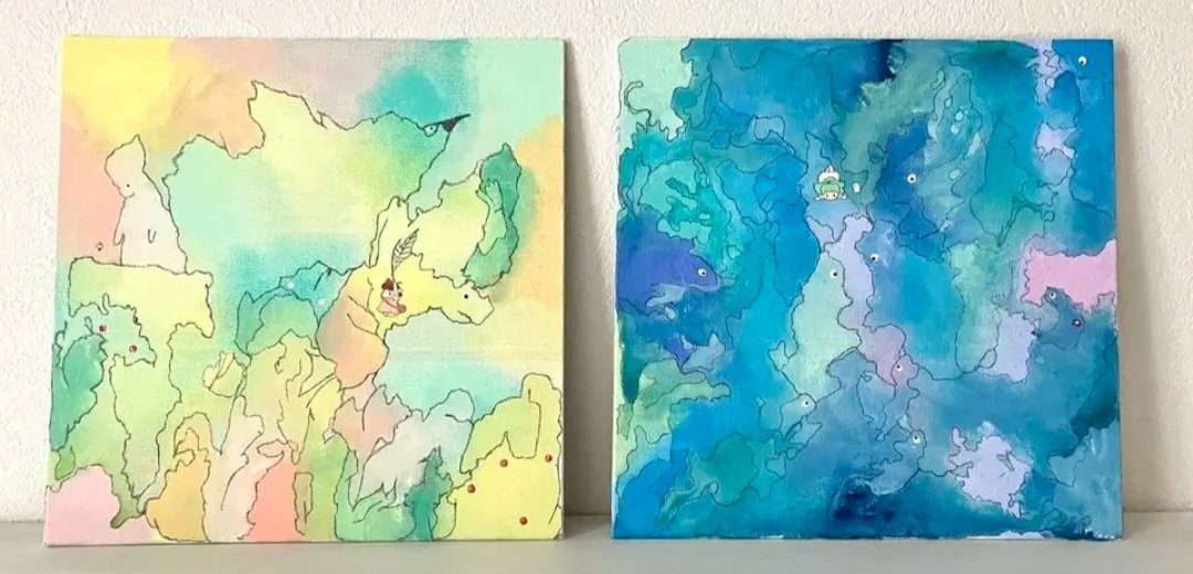 2 4 awainote @awainote1027 の絵🎨 新作です🎵 「ペポとミミ#1」 詳細と購入はこちらから👇️ minne.com/items/35211995 #awainote #minne_new #minne #原画 #絵 #イラスト #抽象画 #アート #art #abstractart #artwork #青 #緑 23/01/16 08:19