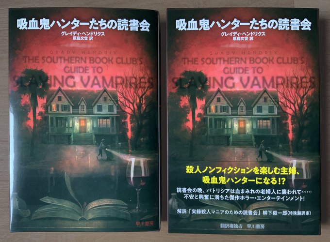 17 50 本日発売、『吸血鬼ハンターたちの読書会』グレイディ・ヘンドリクス/原島文世訳 早川書房、カバーイラストを描きました。 アメリカの主婦たちが主人公でタイトル通り吸血鬼物。ホラーです。かなり怖かった。。 著者初邦訳だそうで未邦訳のリストにも楽しそうな本が色々。今後も続いたらいいなあ。 22/04/20 12:03