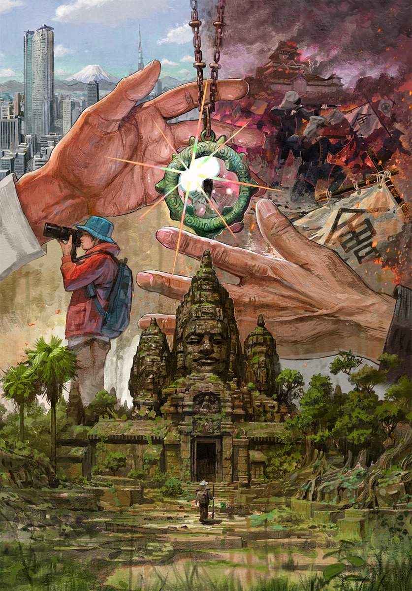 本日発売!『クメールの瞳』斉藤詠一著(講談社文庫)カバーイラストを描きました。 2021年単行本の文庫化です。 帯文に”時空を超えた”とありますが、過去と現代が交錯する壮大な物語で、イラストもいつもの自分の感じよりちょっとにぎやかになったかなと 思います。 装丁は坂野公一さんです。
