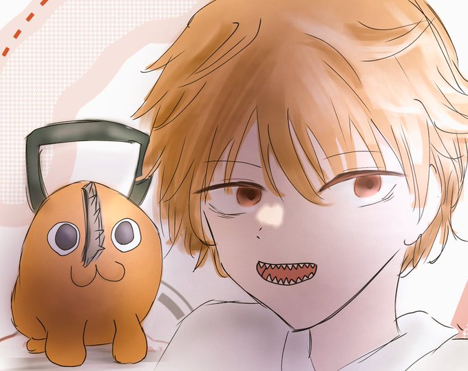 デンジとポチタ!!٩(ˋ͈ᗨˊ͈)ア ビュディフォ スター ポチタはじめて描きました #絵 #イラスト #絵描きさんと繋がりたい #絵描きさんとつながりたい #チェンソーマン #デンジ #ポチタ