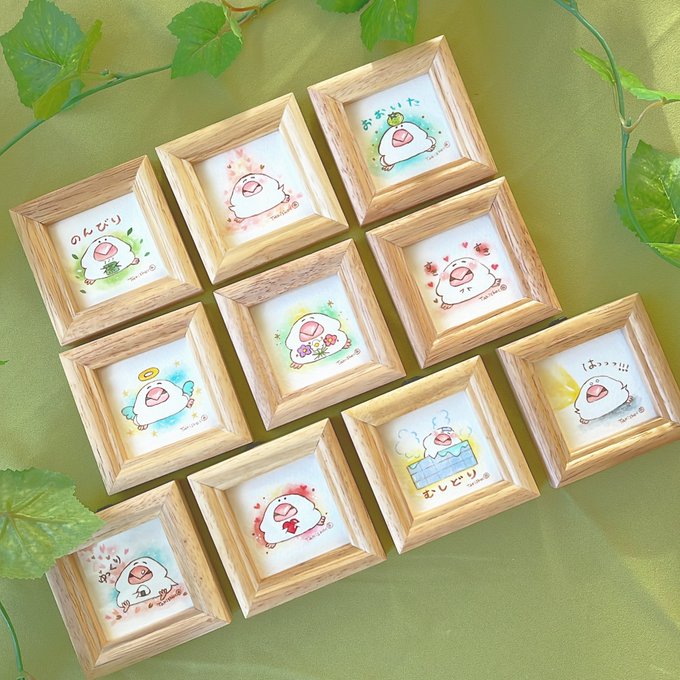 先日お知らせした #アミュプラザおおいた の7周年イベント🌈 にじいろマーケットにて販売するミニ原画たち。 ホワイトデーのプレゼントにも🎁 1つずつ描いているので、 欲しいデザインがある方はお早めに! ブン太くん見てるとボーッとできます😑 #イラスト