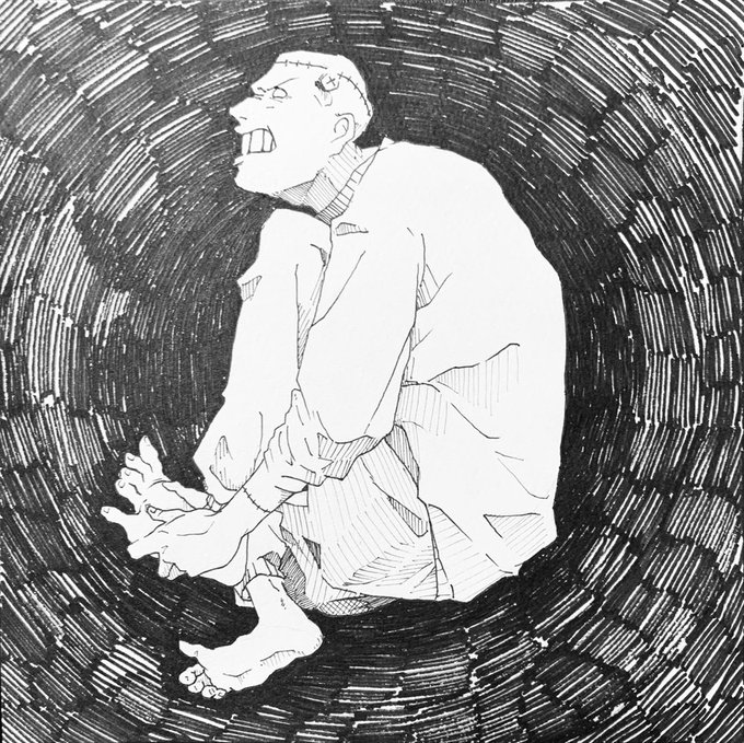 連投。小指ぶつけたフランケン。 #イラスト #ペン画 #アナログ #アナログイラスト #アナログ絵 #アナログ作家フェス #アナログBANBAN #お絵描きさんと繋がりたい #お絵描き好きさんと繋がりたい #イラストレーション #ふらんけん