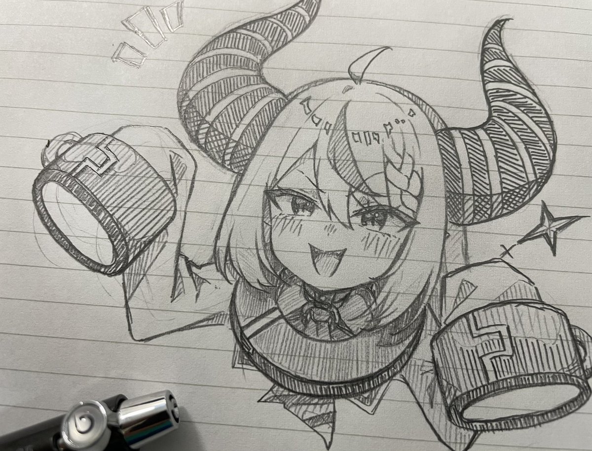 明日提出のレポートファイルがパーになったのでとりあえず推しの笑顔を描きました。今日は寝ないで頑張ります٩( ᐛ )و #ほしまちぎゃらりー