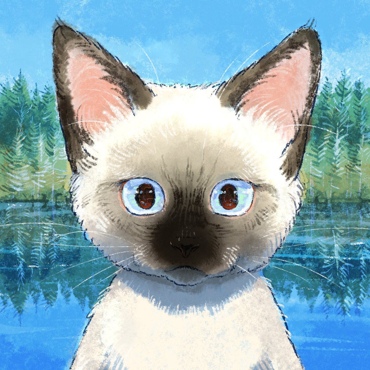A view I see when I wake up every morning on the bed #illustration #digitalart #イラスト #絵 #cat #猫のいる暮らし