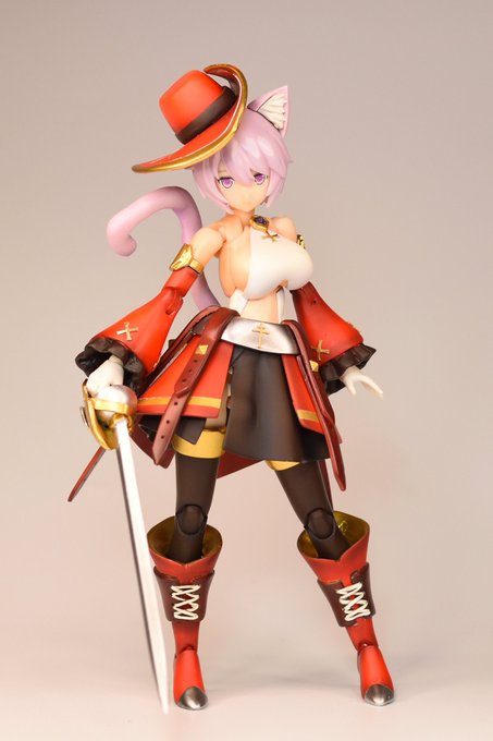「長靴をはいた猫」完成しました! お祭り参加デース! 赤いイメージがあるので赤いネコミミ娘! 中世っぽい服装に、ファンタジー味を足したような感じ。 ウィッチをベースに、服はエポパテでつくっています。 #カオプリグリム発売前制作祭 #グリム完成