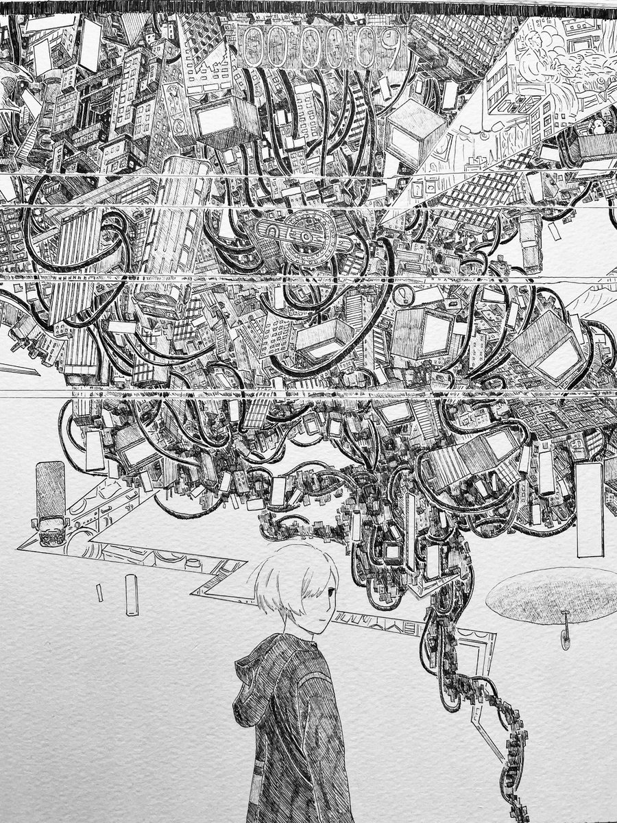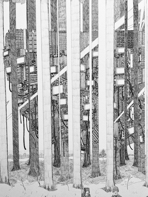 この季節になると旧シェル美術賞(現在はIdemitsu Art Award)を思い出す 130cm×162cmの100号パネルに描いた作品、半年間黙々と深夜まで描き続けた。 応募総数800点中50点のみが選ばれるコンペに初めて出したのが旧シェル美術賞だった。あの頃は狂っていた。 #ペン画 #細密画 #絵描きさんと繋がたい