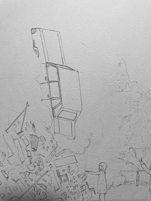 この調子で行けば来週で下書きが終わりそう。 ただ失敗した、、、霧に持ち上げられた車のジル、年十数台しか作られなかった高級車と描いた後に知った モスクビッチは一般車で台数は問題ないと思うが #絵描きさんと繫がりたい #下書き