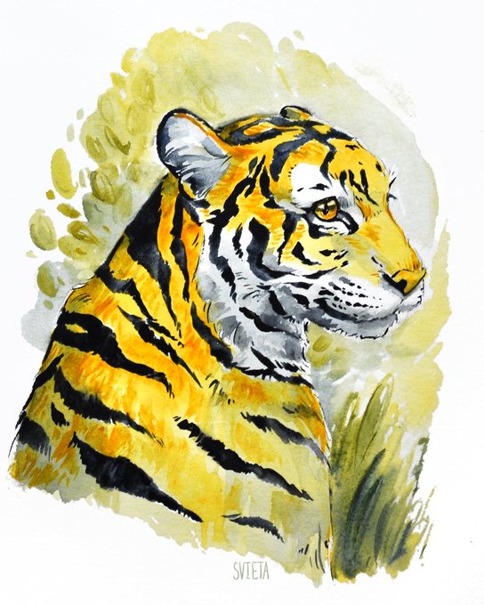 #inktober day 3 - a yellow tiger. #inktoberday3 #inktober2019 #tiger #watercolor #limitedpalette #yellow #dailypainting #animalportrait #animalart