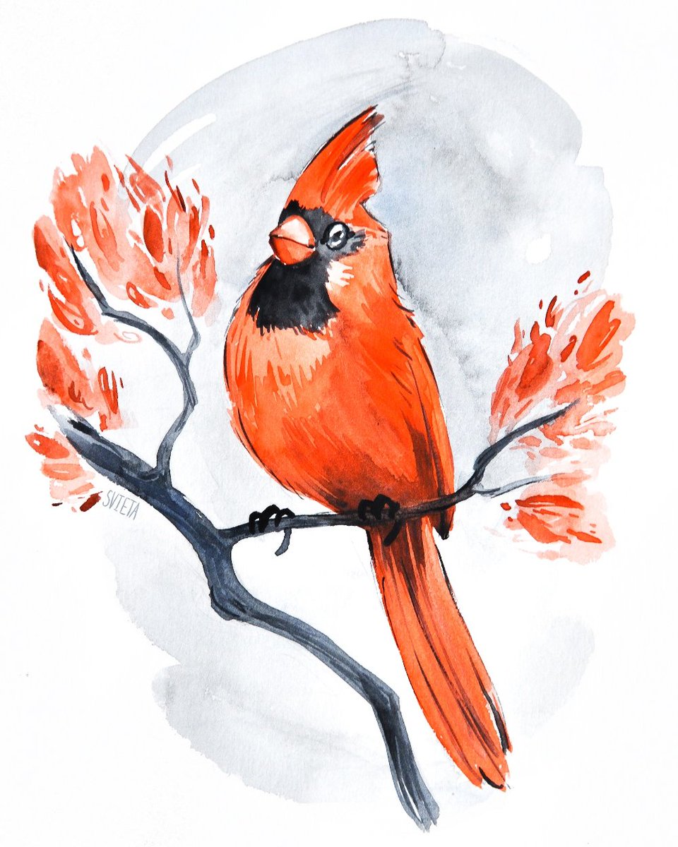 Day 8 of #inktober - Cardinal Bird 🐦 #cardinal #cardinalbird #cutebird #bird #birb #watercolor #limitedpalette #inktoberday8 #dailypainting #animalart