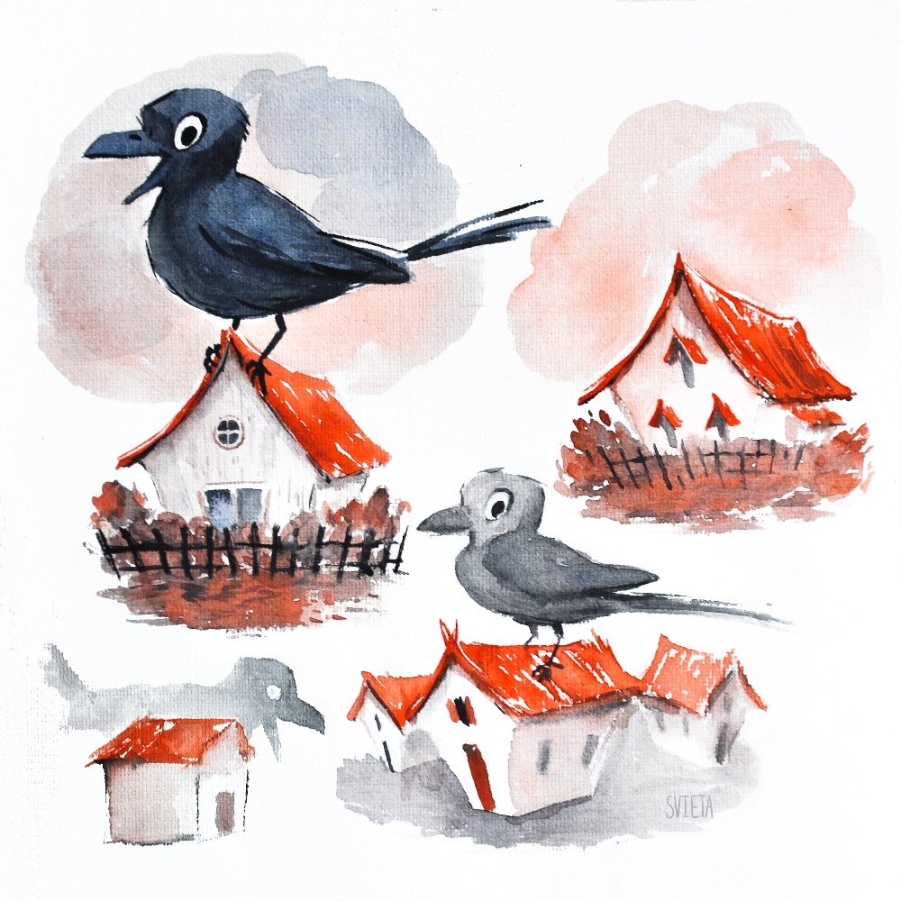 Thumbnails for day 9 of #inktober. I'll post the finished piece later .✨ #cuteillustration #inktoberday9 #cutebird #bird #birb #littlehouse #fantasy #fantasyart #childrensbook #kidlitart #kidlit #raven #sketchdump #doodle #watercolor