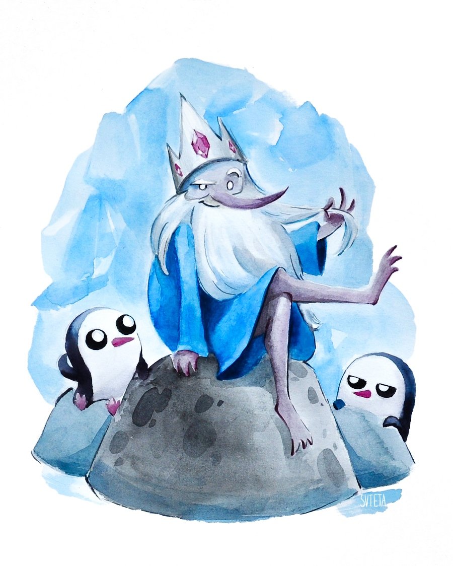 Flirty Ice King with Gunthers - day 25 of #inktober ❄ #iceking #icekingadventuretime #adventuretimefanart #adventuretime #gunther #guntz #gunter #penguin #cartoon #funny #cute #inktoberday25 #inktober2019 #watercolor #limitedpalette