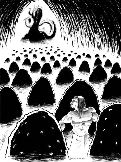 Inktober día 17: salado Cruzando un gran río salado para llegar a mictlan #inktober #inktober2022 #inktoberday17 #inktobermexico