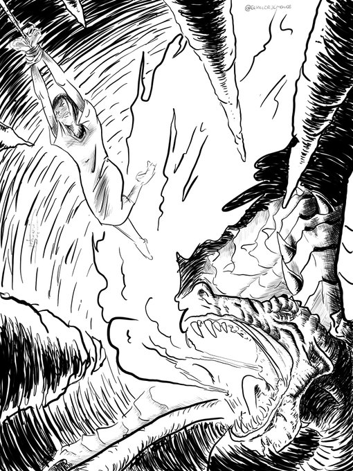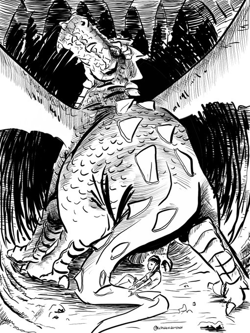 Inktober día 19: cola La misión era detener al dragón a cualquier costo... #inktober #inktober2022 #inktoberday19 #inktobermexico
