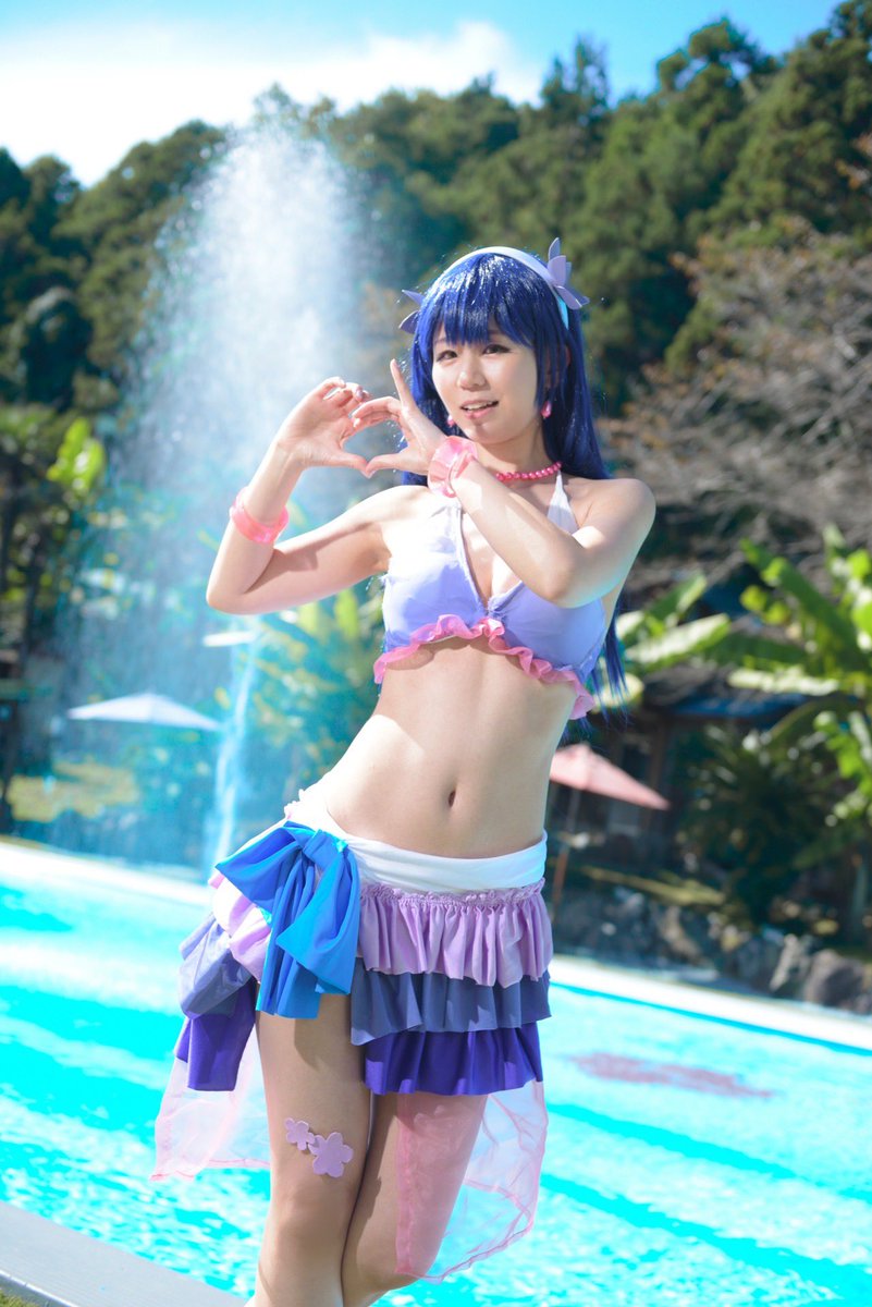 【cosplay】 ラブライブ! 夏色笑顔で1,2,Jump! 園田海未 ードキドキハート打ち上げ💓 Photo:霧島さん@kirisima_mikot #城山スタジオ