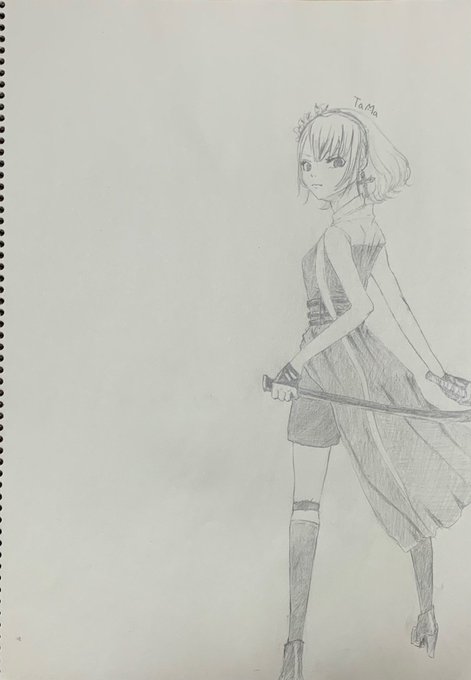 まだこんな感じです。。後ろの狐や武器はあとで一から描き直す!左利きには習字はキツいよ?wどうするかな…#アナログイラスト #模写 #放置少女 #イラスト好きと繋がりたい #絵描きさんと繋がりたい