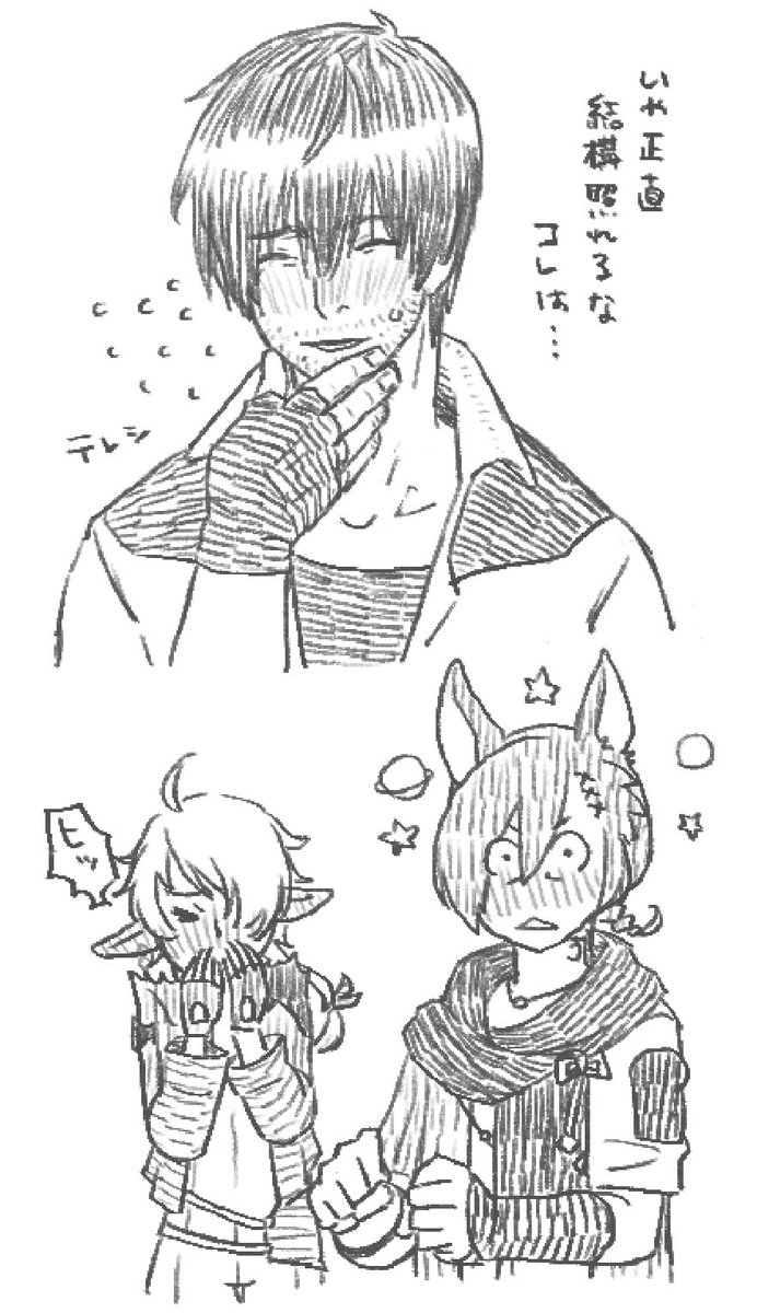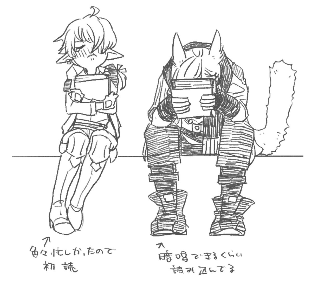 お昼のらくがき 蒼天のイシュガルドを一緒に読んだラハくんとアリゼー