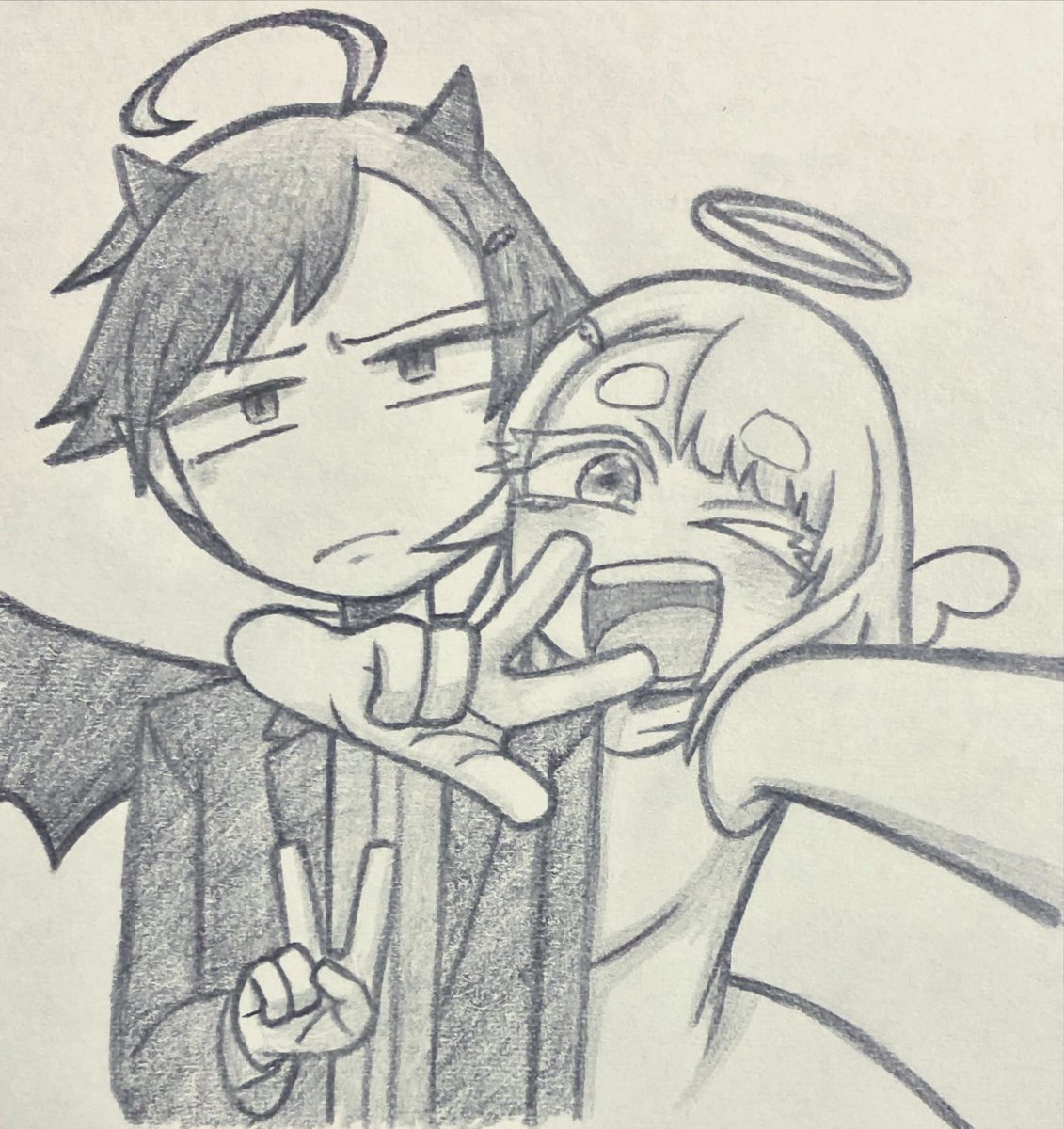 オリキャラちゃん落描き 気弱で夢見がちな元人魚のおとはちゃんと彼女を人魚に戻す協力をしているしおりちゃんです 漫画描けたらいいんだけどなぁ… #落描き #アナログイラスト #オリキャラ #絵描きさんと繋がりたい #絵柄が好みって人にフォローされたい
