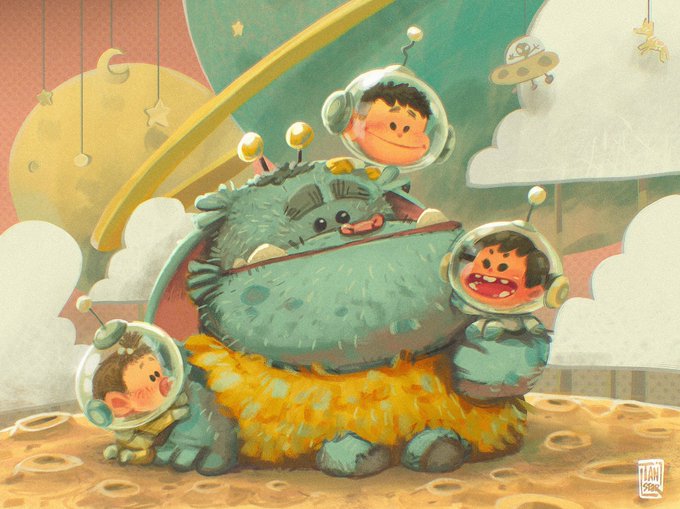 เพื่อนตัวโตของเด็กๆ Our Big Friend 🧑🚀👽🌟🪐 #galaxyscutest #procreate #procreateart #characterdesign