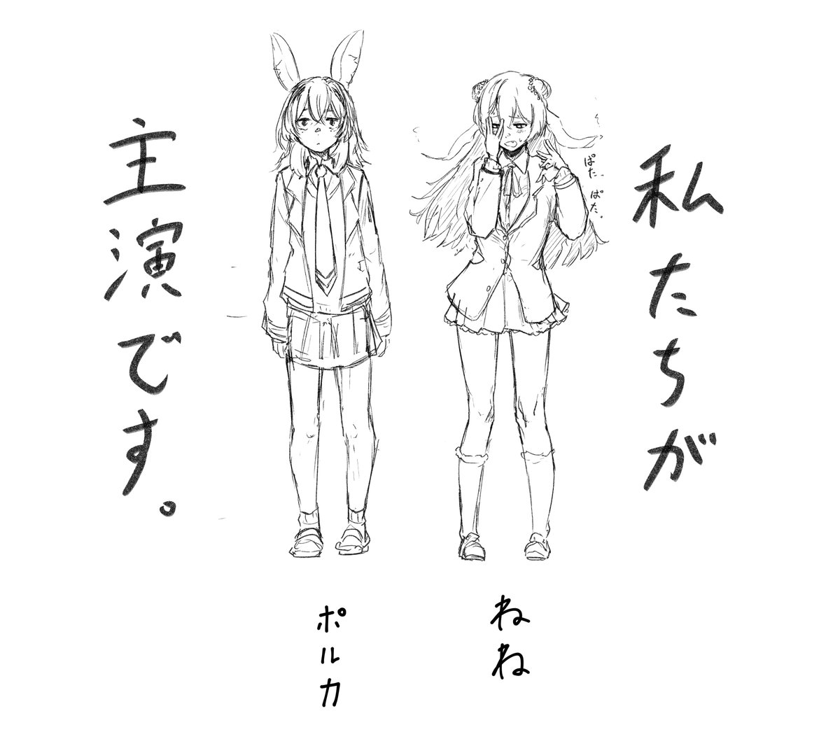 「ね」ぽらぼ #ねねアルバム ポルカver.もまだ清書してないけど・・・このシリーズ4人分描いて並べたら楽しそう。ワクワクするねぇ。