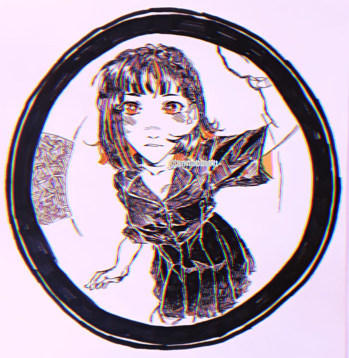 Dibujo pocho de memoria que hice en clases con un portaminas y subrayadores escolares de Mabushii DNA Dake Quien sabe quizá algún dia lo pase a digital (wip?) #ずとまよファンアート