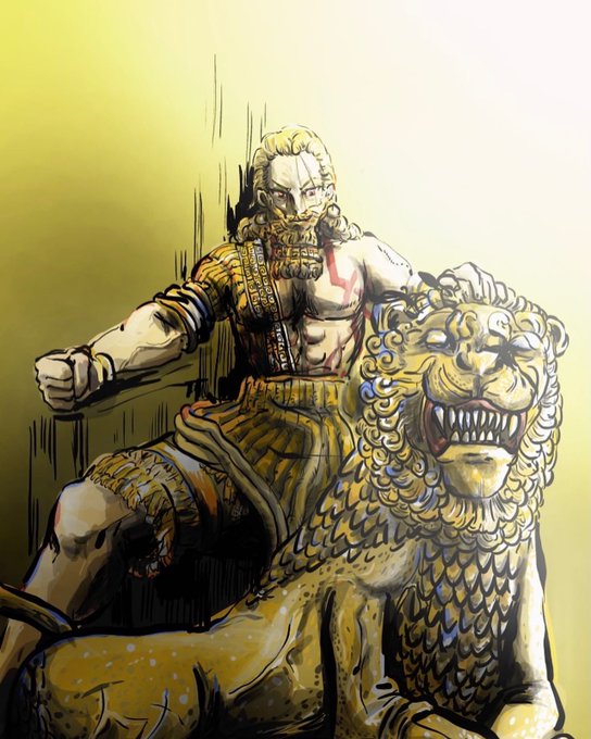 2 5 最推しギル様PUに際して去年描いた 実際のレリーフ参考に妄想老年王を描いたもの!ここまで無課金を貫いてきてギル様の宝具は現在4、宝具マチャレンジ果たして #fgo #FGO #ギルガメッシュ 23/01/03 00:41