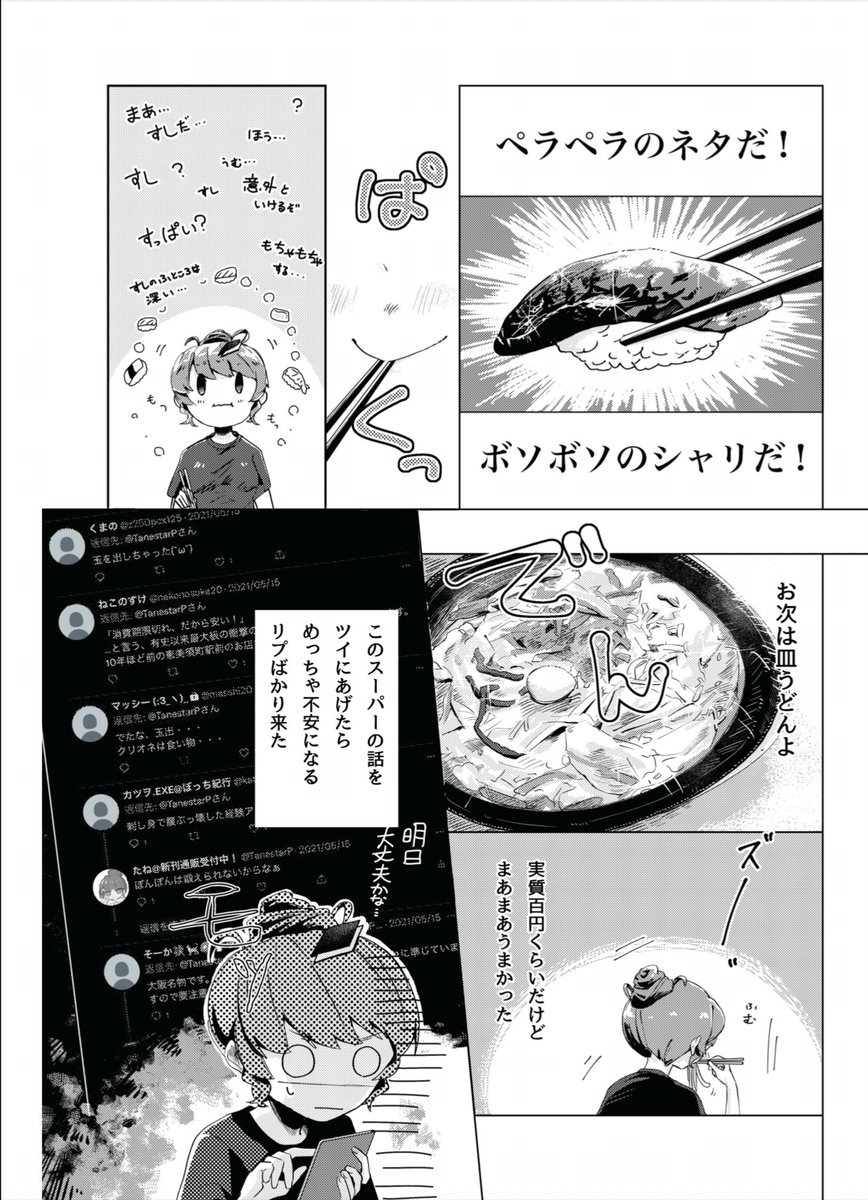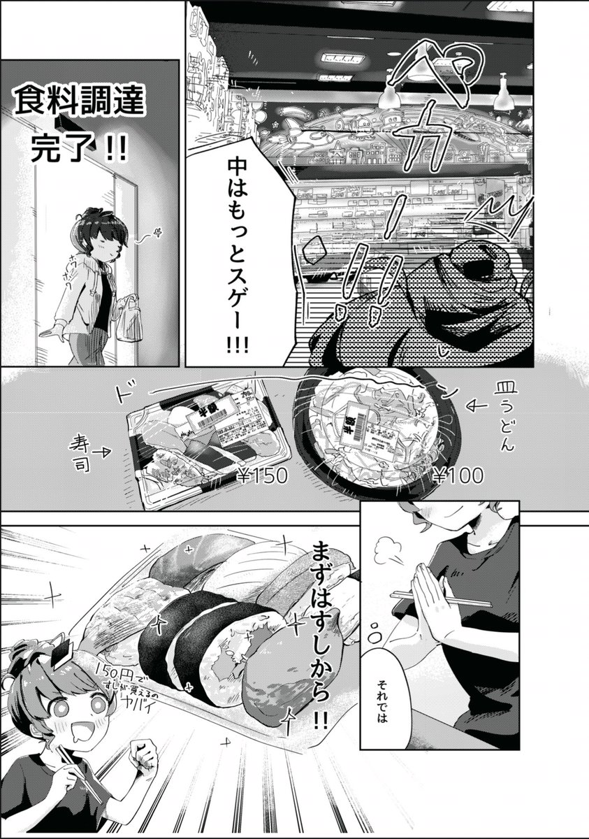 自分が美少女だと思いこんでいるオタクが大阪の激安スーパーに1パック150円のお寿司を食べに行く話③ #漫画が読めるハッシュタグ 絵 んろ @947t0221 編集 鈴木ユートピア @suzukiutopia 原作 たね @TanestarP
