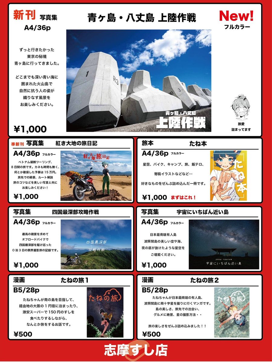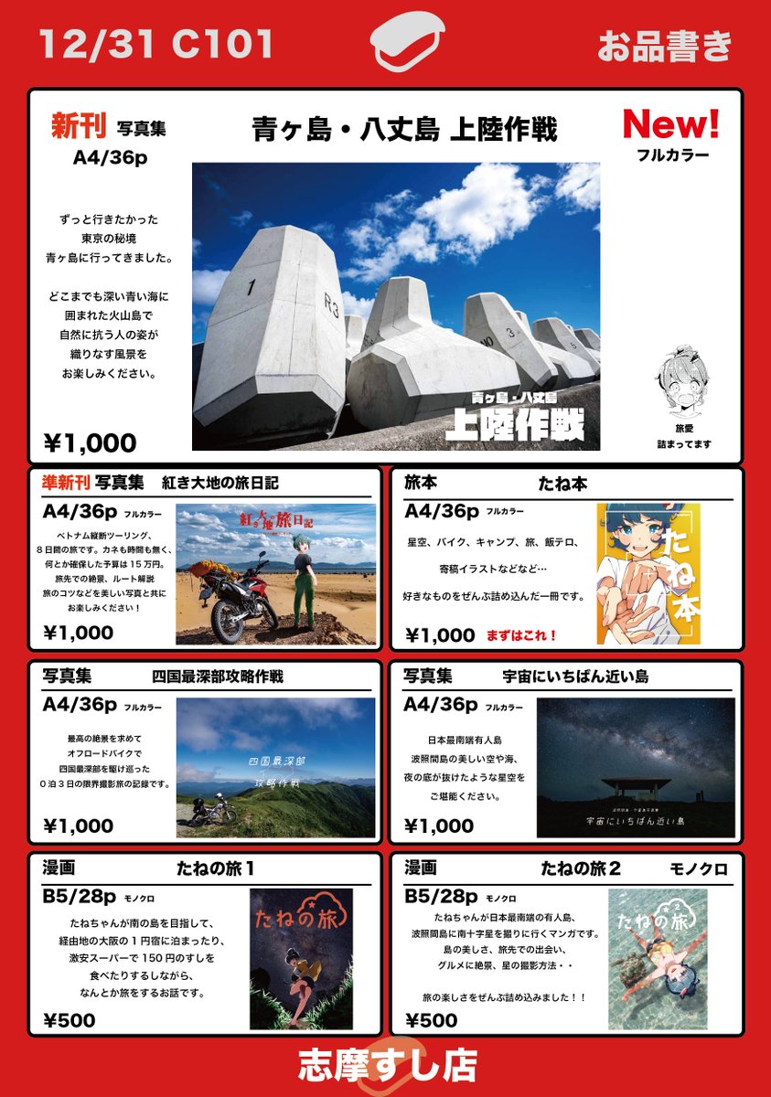 #C101新刊、青の深さが最高に印刷されてるので早くみんなにお届けしたいです… ちなみに1枚目は裏表紙です。なるべくたっぷり情報載せたいのでリバーシブル仕立てになってます。 #青ヶ島・八丈島上陸作戦