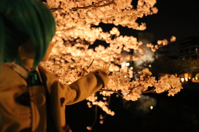 0 8 #今夜のドール撮影120分一本勝負 お題【のばす】 美しい夜桜に手を伸ばす 21/06/01 22:12