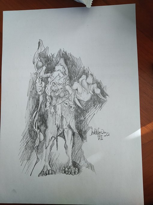 Inktober 2022 Day 6 Night Hag. Second time I attempt to draw a hag. Trying a little asymetrical anatomy, and adding that broken, twisted bones featured heavily in latest season of Stranger Things. #dungeonsanddragonsart #inktober2022 #inktober2022day7 #dnd #dndart #curesofstradh