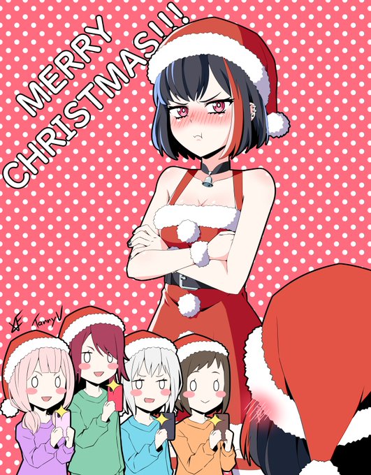 Merry Christmas with Afterglow #美竹蘭 #青葉モカ #羽沢つぐみ #宇田川巴 #上原ひまり #バンドリ #Afterglow #bandoriart #bandori pixiv.net/en/artworks/10…