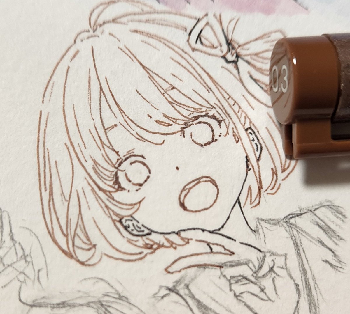 慎本真先生のYouTube動画、右左連続20回お絵描きチャレンジを参考に実践してみました(描くの楽しかった…!) 今回選ばれた項目等スレッドに記載 #イラスト #女の子 #アナログ #水彩
