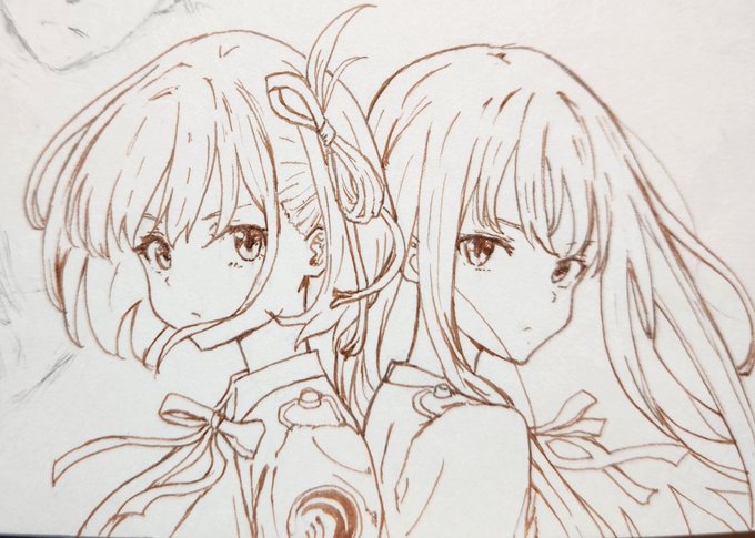 6 23 リコリコのキービジュファンアートだいぶ間空きましたが完成。 #リコリス・リコイル #リコリコ #井ノ上たきな #錦木千束 #アナログイラスト #イラスト #透明水彩 22/10/14 20:16