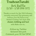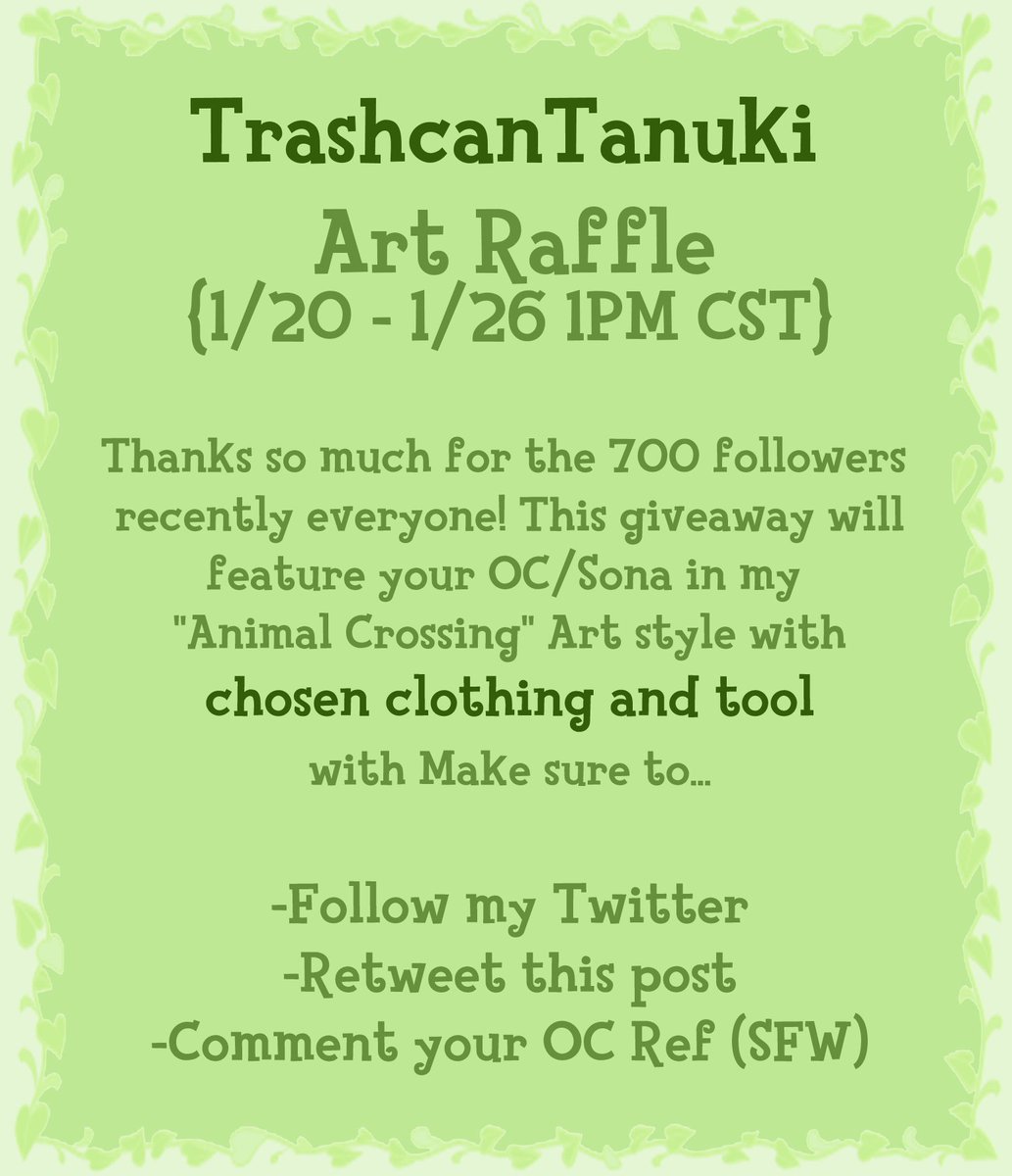 Thanks so much for the huge support & 700 followers from my latest post!!! I'm hosting two art raffles for your OC/Sona drawn in my "Animal Crossing" artstyle. - Follow my Twitter - RT - Comment with a picture of your OC/Sona (SFW) #AnimalCrossing #furryartwork #Giveaways