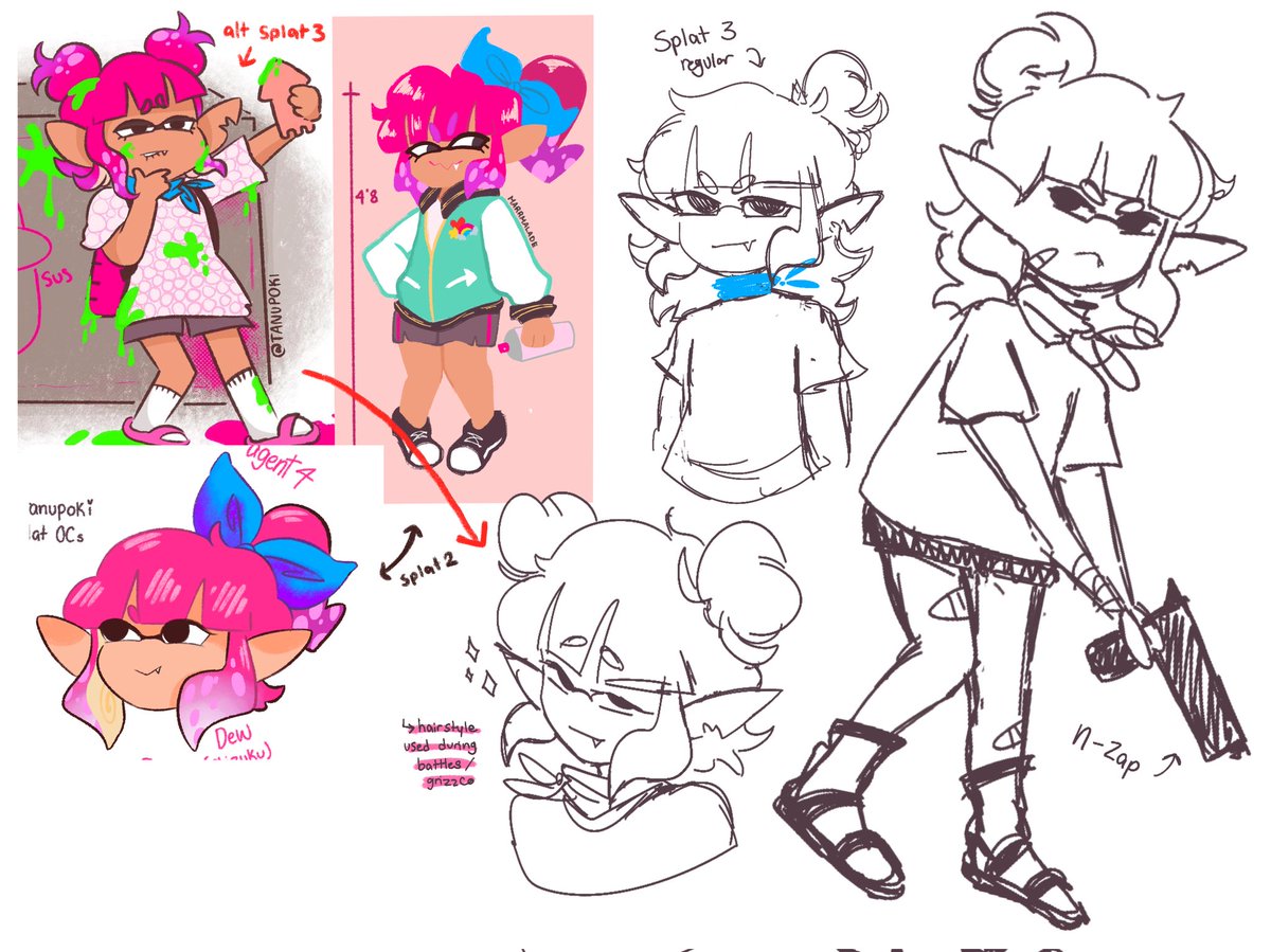 a typical battle w/ dew and @__maricolo’s tad 🦑 #splatoon3 #splatocs #splatoonoc #agent4 #neoagent3 #rkgk
