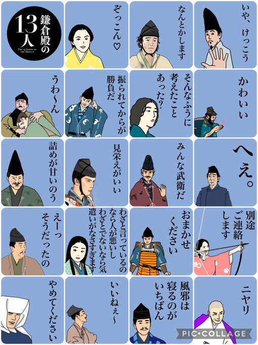 #鎌倉殿の13人 妄想スタンプにお付き合いくださった皆様、ありがとうございました😊 さすがにスタンプ販売は叶いませんが😅妄想絵はできる限り増やしてみました。あの人もこの人も、あのシーンもこの台詞もできれば盛り込みたかった(残念) 武衛の皆さま!残り2回の放送。思いきり楽しみましょうね! twitter.com/taratdakk/stat…