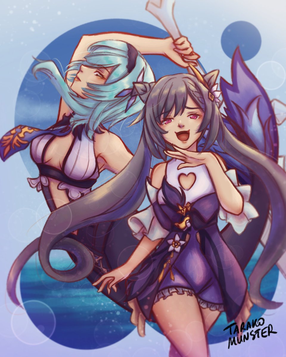 "You asked for the Physical DPS Queen, Traveller?" 😼 #原神 #GenshinImpact #genshinimpactfanart #keqing #eula #mermay #summer #krita